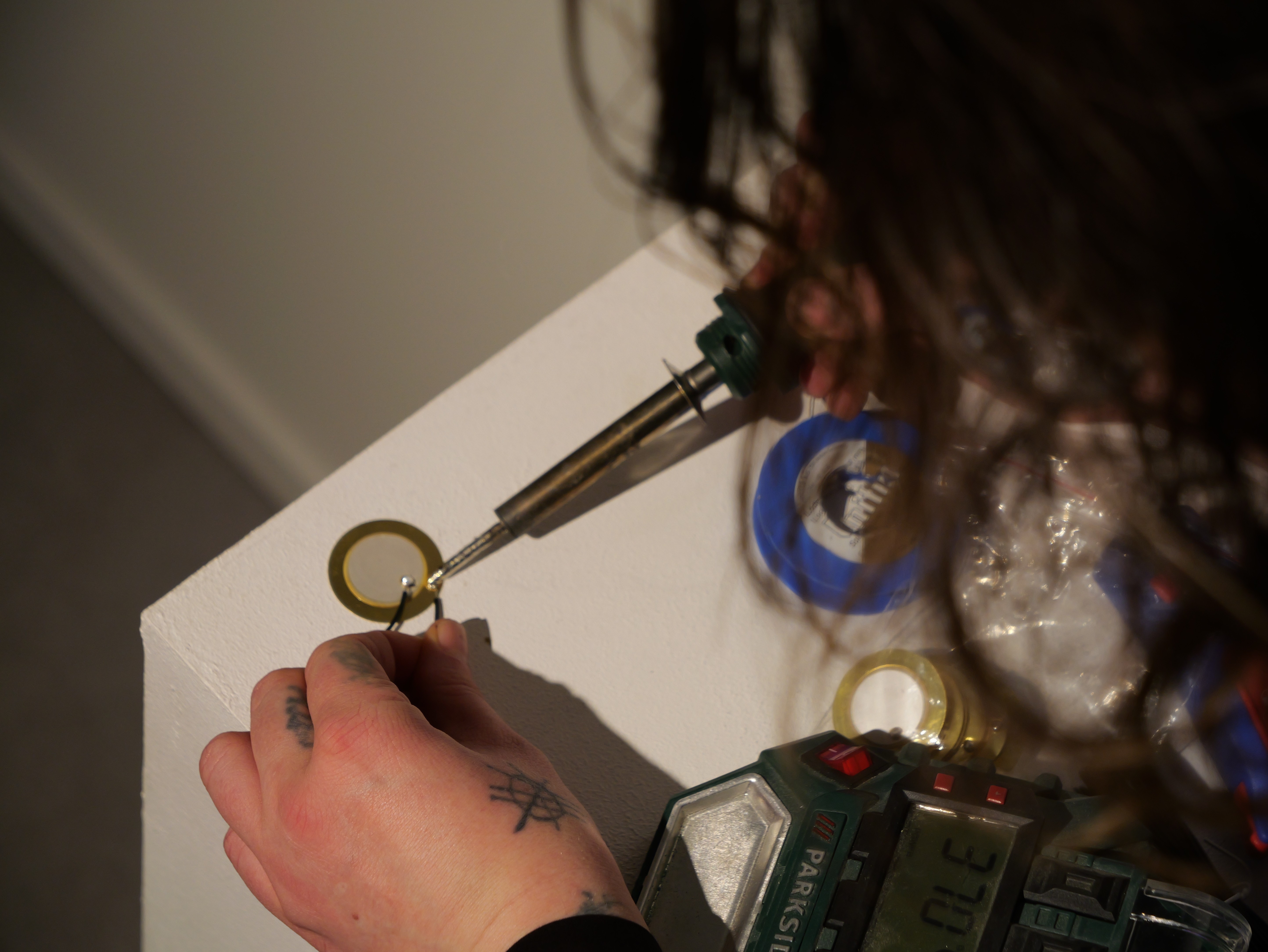 The installation is built up by improvisation, during three days my residency is focused on decisions regarding placement of the contact microphones and what is amplified. This work becomes the composition and score. But it is not a finished sound work until you the visitor activate the installation. Your presence, movements and shared exploration on the final day of In Amplified Residence is key to how it sounds.